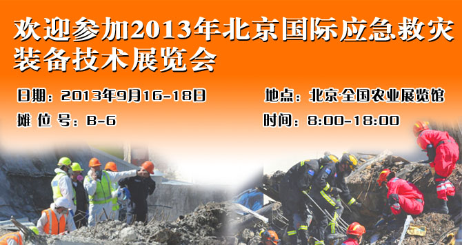 我司于2013年9月16日参加欢迎参加2013年北京国际应急救灾装备技术展览会,敬请各位新老客户莅临参观指导!