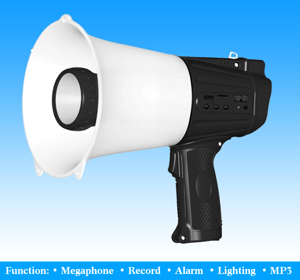 Feature • Professional design, Unique appearance, innovative, easy to operate multi-function megaphone • Large power, clear sound, loudly • Stable performance, well frequency characteristics, low noise • use 6pcs AA dry batteries ( or lithium batteries)